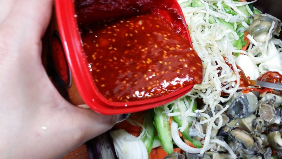 ?)을 넣어 만들어 먹어도 실패하지 않는답니다. 양념장 만드는 것이 의외로 쉽지 않았던 저로서는 특단의 잔머리를 써서 했는데 의외로 맛나서 귀찮을 때 종종 했던 경험이 있어서 알려드립니다. 그냥 참고만 해 주시구요. 새콤달콤매콤 아삭아삭 쫄깃한 골뱅이무침 도전들 해 보세요.