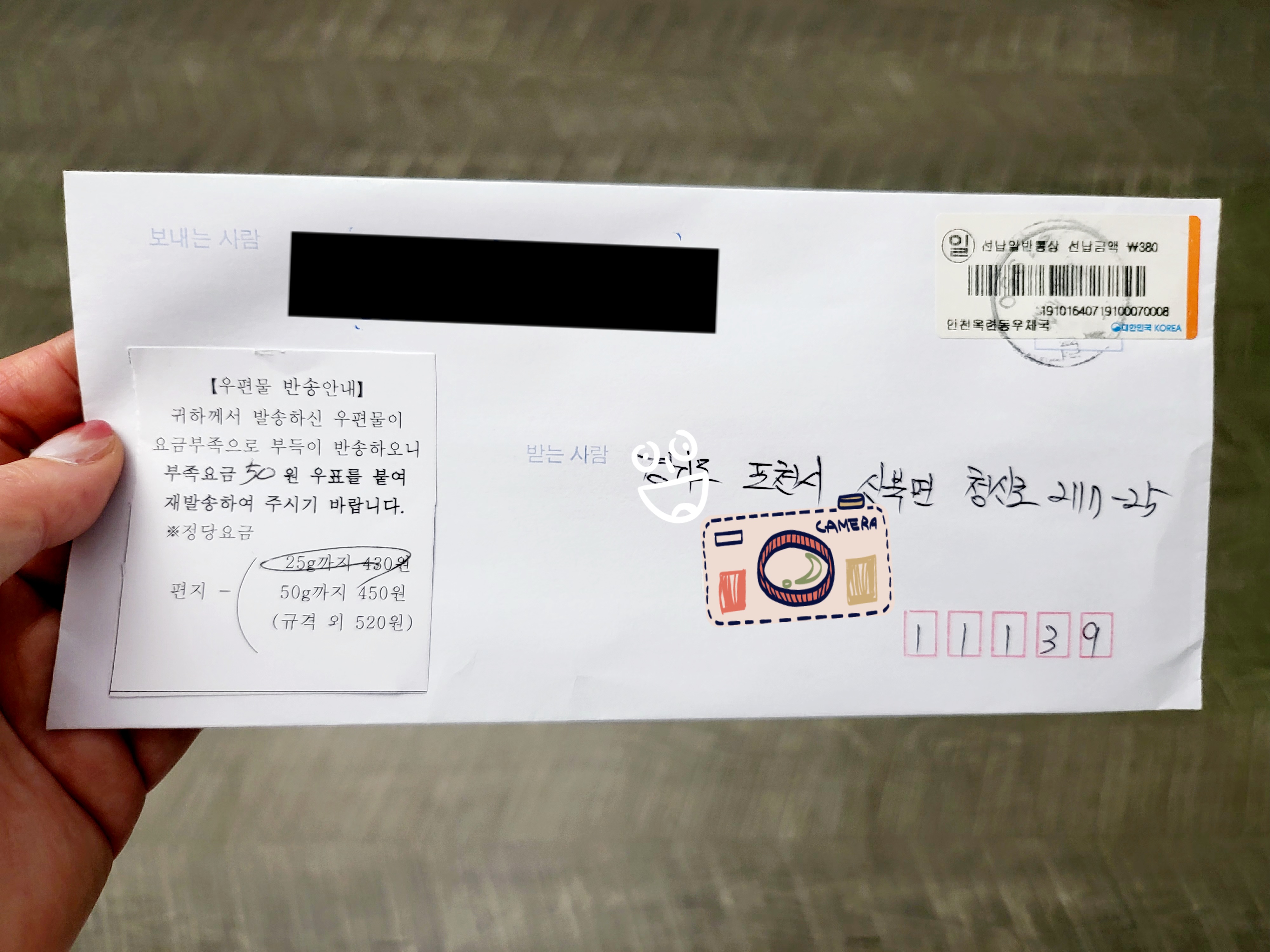 우편물반송안내라는 문구가 눈에 들오면서 귀하께서 발송하신 우편물이 요금 부족으로 부득이 반송하오니 부족 요금 50원 우표를 붙여 재발송하여 주시기 바랍니다 <아울러 25g까지 430원>라고 하면서 보인 글귀를 보니 무게는 아닌 것 같고 뭐지 싶어 우체국 갔더니 제가 잘못 알고 있는 사실이 있더라고요.