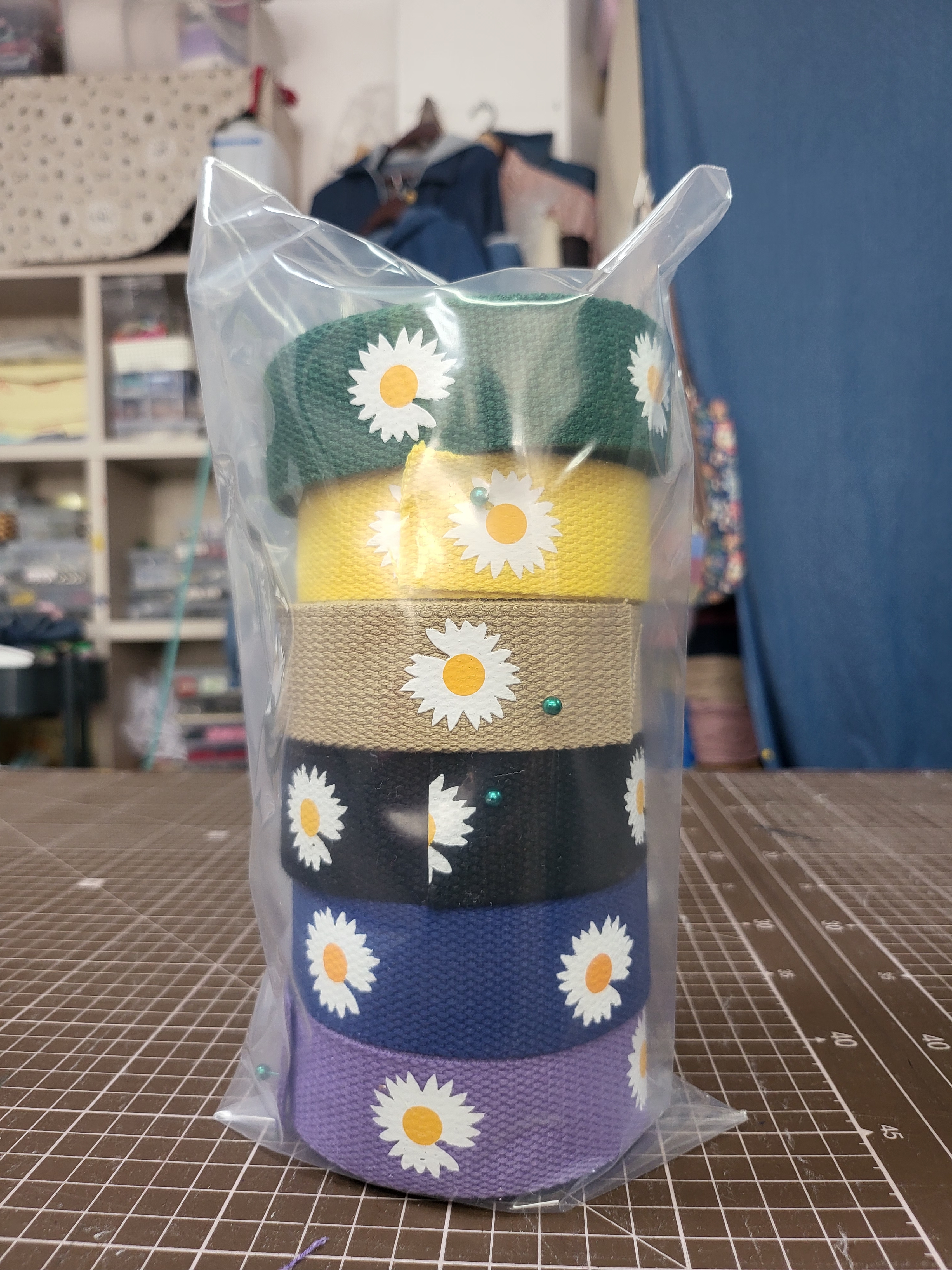 가방부자재, 꽃무늬 웨이빙 끈