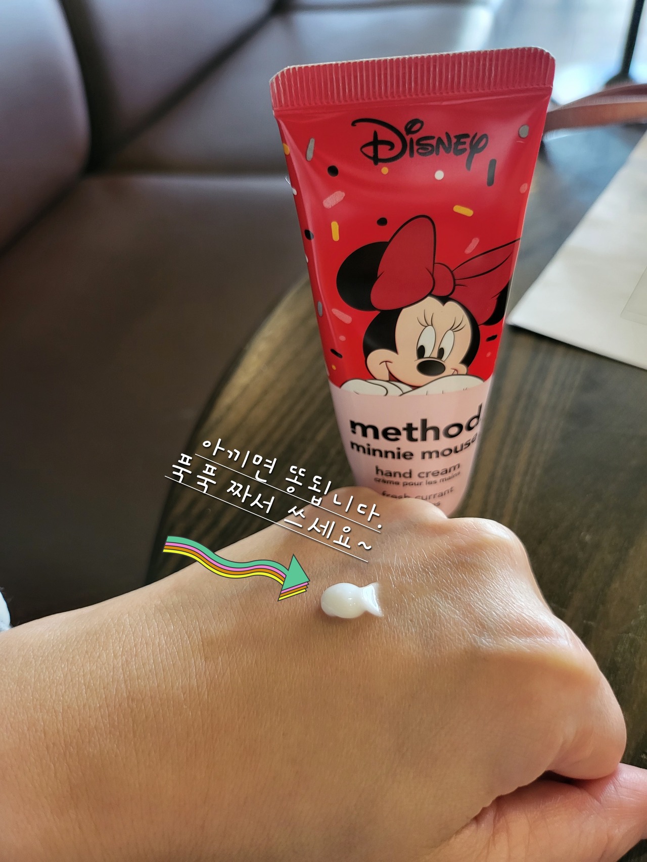 진한향을 잘 사용하지 안는터라 몸에 바르는 종류를 고르는데 매우 민감한 리뷰천사는 의외로 메소드미니마우스핸드크림에는 무척 관대합니다. 후레쉬커런트향으로 제가 느끼기에는 과일과 꽃향기가 믹스되어 있는데 진하지 않으면서 은은하고 자극적이지 않아 제 마음을 사로잡았습니다. 향이 짙고 진하면 두통을 느끼는 리뷰천사는 은은한 향을 완전 사랑하는데 이 아이가 그렇답니다. 또한 너무 큰 용량이 아니다 보니 그것 또한 제가 이 아이를 선택한 이유인데요. 양이 많으면 언제 쓰지 왠지 너무 오래 쓰는 듯한 느낌이 들어 끝까지 못쓰고 버리기가 일쑤라 작은 사이즈나 중간 사이즈의 핸ㄷ크림을 리뷰천사는 가장 선호한답니다.