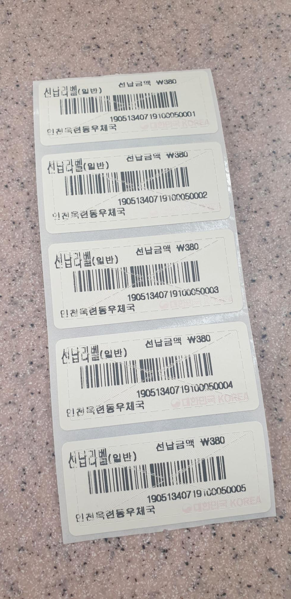 참.. 380원짜리 우표 구매하려고 했는데 또 하나 놀란 사실은 아직 우표가 새로이 발행되지 않아 우표를 구매하면 라벨지를 출력해서 주는데 그것을 봉투에 붙여 보내라 하네요. 금액이 오른 2019 우표는 6월 말인데 이 일정도 정확하지 않고 기다려야 한다고만 말씀하시네요. 금액만 올리고 우표는 볼 수가 없으니 참 난감한 상황이지요.